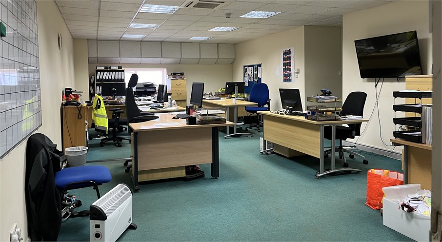 The unit comprises a warehouse of brick and cladding elevations with offices at ground and first floor levels, a mezzanine storage area and yard. There are WC’s and kitchens on ground and first floor.